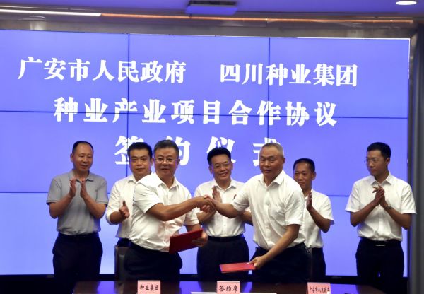 8月11日,四川种业集团与广安市人民政府在成都举行种业产业项目合作签约仪式。厅党组副书记、副厅长卿足平出席并见证签约。广安市人民政府副市长文阁,四川种业集团党委书记、董事长兼总经理易飞出席签约仪式。