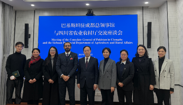 12月30日,农业农村厅党组成员、副厅长王晓勇会见巴基斯坦驻成都总领事坦维尔一行,双方就进一步深化四川与巴基斯坦在农业领域的交流合作进行座谈。