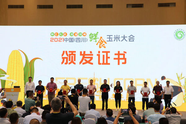 会议田间观摩了来自全国各地111家企业和科研单位的568个新优玉米品种,包括糯玉米品种156个,甜糯玉米品种198个,甜玉米品种195个,特色品种19个。评选并颁布了2021全国(四川)十大优秀甜玉米品种、十大优秀糯玉米品种、十大优秀甜加糯玉米品种、十大特色鲜食玉米品种。