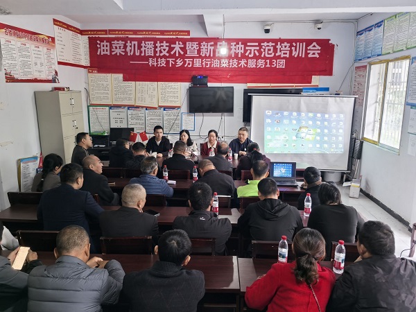 10月20日至21日,省农机化发展推广中心副主任徐东带领由来自四川省农机院、成都市农林科学院、成都市农技推广总站的专家组成的油菜技术服务13团,赴西充县古楼镇开展油菜抗湿机播技术暨新品种示范培训。当地种植大户、农民和县各级农业技术人员共40余人参加。