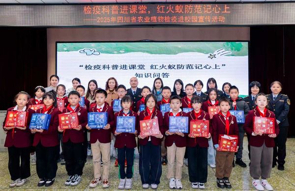 为切实提升中小学生对红火蚁的识别能力与防范意识,筑牢校园生态安全防线,12月3日,厅植物检疫站走进成都市锦里小学,开展以“检疫科普进课堂 红火蚁防范记心上”为主题的农业植物检疫宣传活动,为四年级 170 余名师生带来了一场生动有趣的科普盛宴。