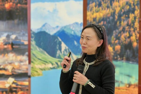 读书会现场萦绕着悠扬的新疆音乐,布置着富有特色的风景画作,营造出浓郁的新疆风情,展开一场沉浸式的阅读。活动分为主席引读、小组共读、自由分享三个阶段,陈婷主席特意为本次活动做了以光芒为主题的分享,现场气氛轻松而热烈。读书会尾声,通过随机互换阿勒泰风光书签,大家互赠祝福与鼓励。