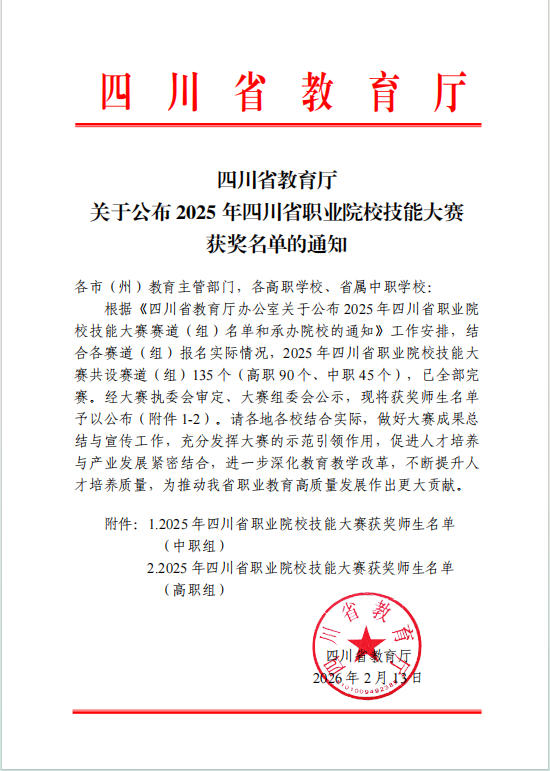 热烈祝贺我校师生在2025年四川省职业院校技能大赛中奋勇拼搏,荣获一银两铜的骄人佳绩,充分展现了我校职业教育的育人成果与学子风采!