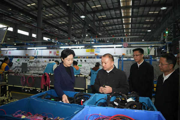 10月30日,省委副书记、省长施小琳在广安经开区比亚迪线束生产车间,调研“智改数转”助推企业提质增效情况。