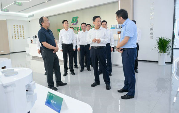 5月23日,省委书记、省人大常委会主任王晓晖到位于绵阳经开区的四川玖谊源粒子科技公司调研,了解企业技术创新、智能生产、市场拓展等情况。