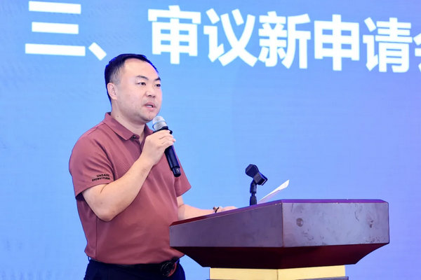 ▲常务副秘书长段波宣读新申请会员单位及调整名单,并提请常务理事会审议