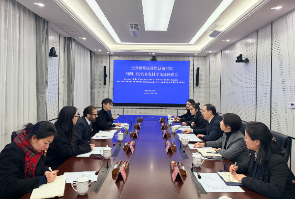 12月30日,农业农村厅党组成员、副厅长王晓勇会见巴基斯坦驻成都总领事坦维尔一行,双方就进一步深化四川与巴基斯坦在农业领域的交流合作进行座谈。