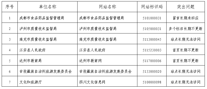 (三)网站日常运维监管仍需加强。有的单位信息发布审核不严格,日常读网检查不细致。有的网站运维力量不足,安全防护能力弱,阿坝州科学技术局网站的网页代码被篡改。有的动态新闻栏目长期不更新,个别网站出现空白栏目。广元市、内江市、乐山市、雅安市、阿坝州、省民族宗教委、省粮食和物质储备局等未按时公开网站工作年度报表。