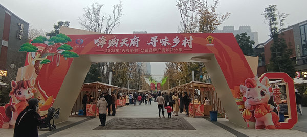 12月19日,以“嗨购天府 寻味乡村”为主题的2025年“天府乡村”公益品牌产品年货大集,在成都市铁像寺水街及多家益民菜市门店同步火热开市。